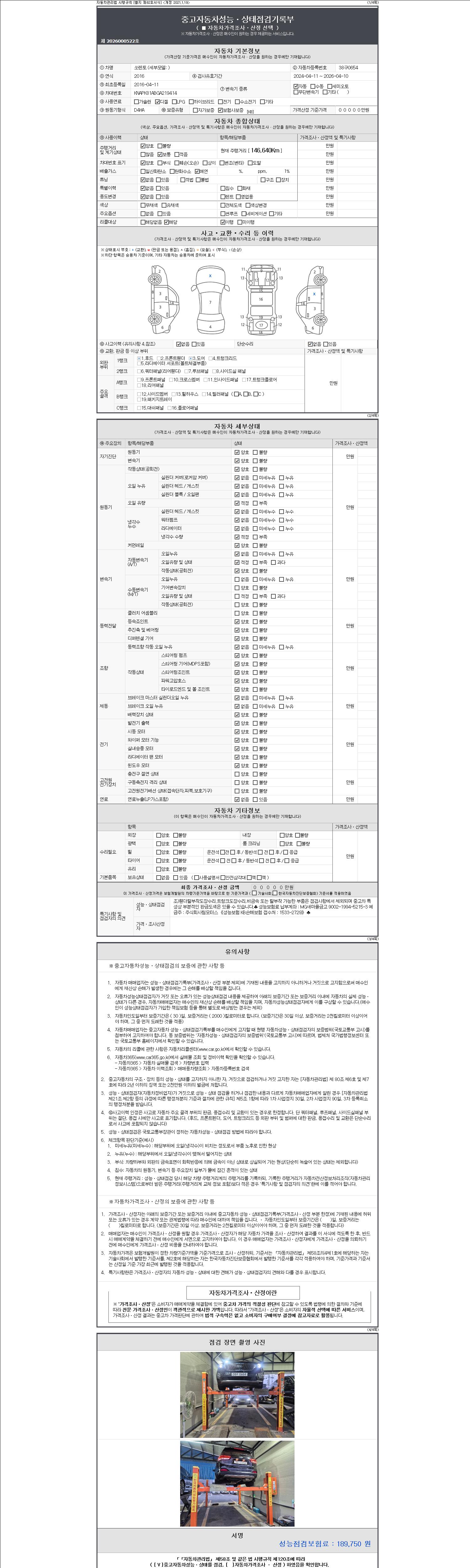2. 차량 등록증이나 성능점검지 등을 상담자에게 요청및 확인하시고 사전에 미리 점검 하시기를 권유드립니다.