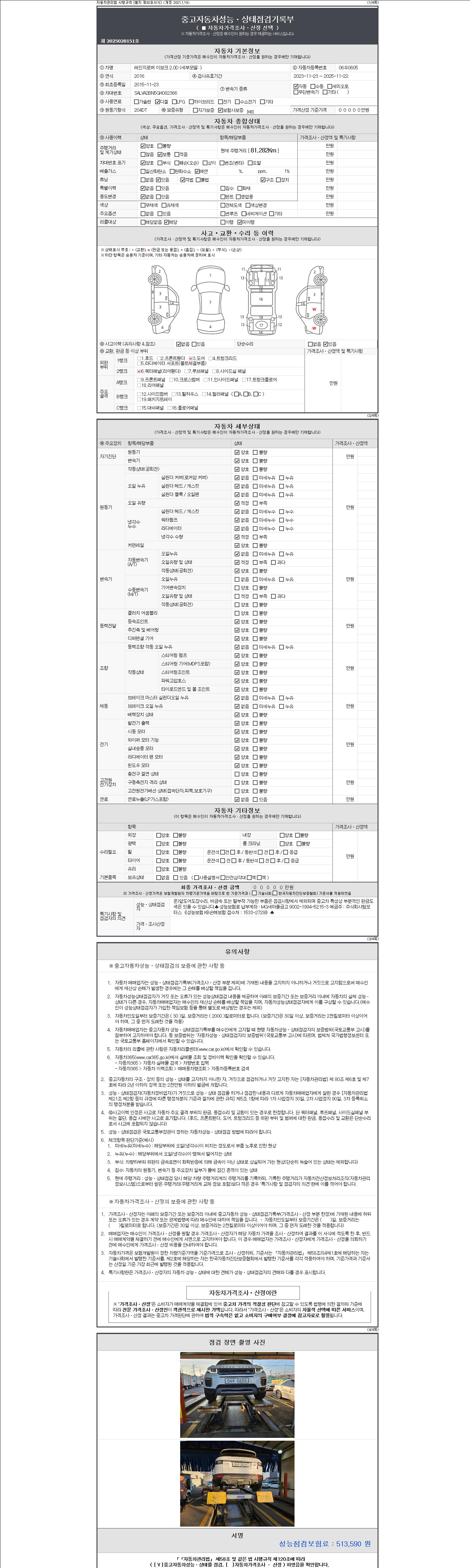 2. 차량 등록증이나 성능점검지 등을 상담자에게 요청및 확인하시고 사전에 미리 점검 하시기를 권유드립니다.