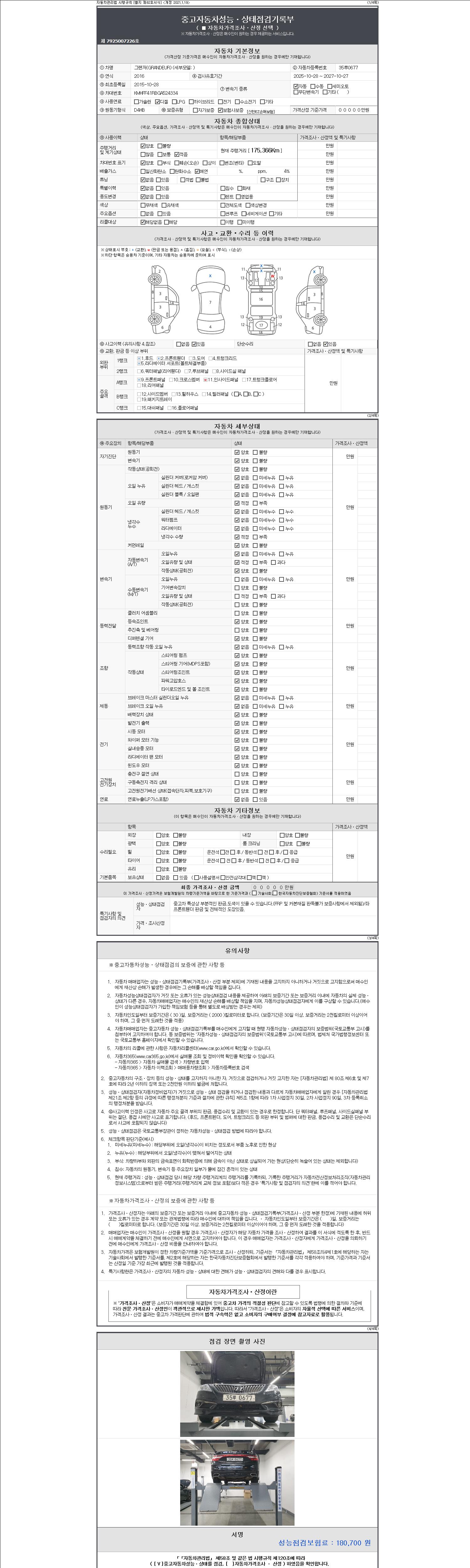 2. 차량 등록증이나 성능점검지 등을 상담자에게 요청및 확인하시고 사전에 미리 점검 하시기를 권유드립니다.