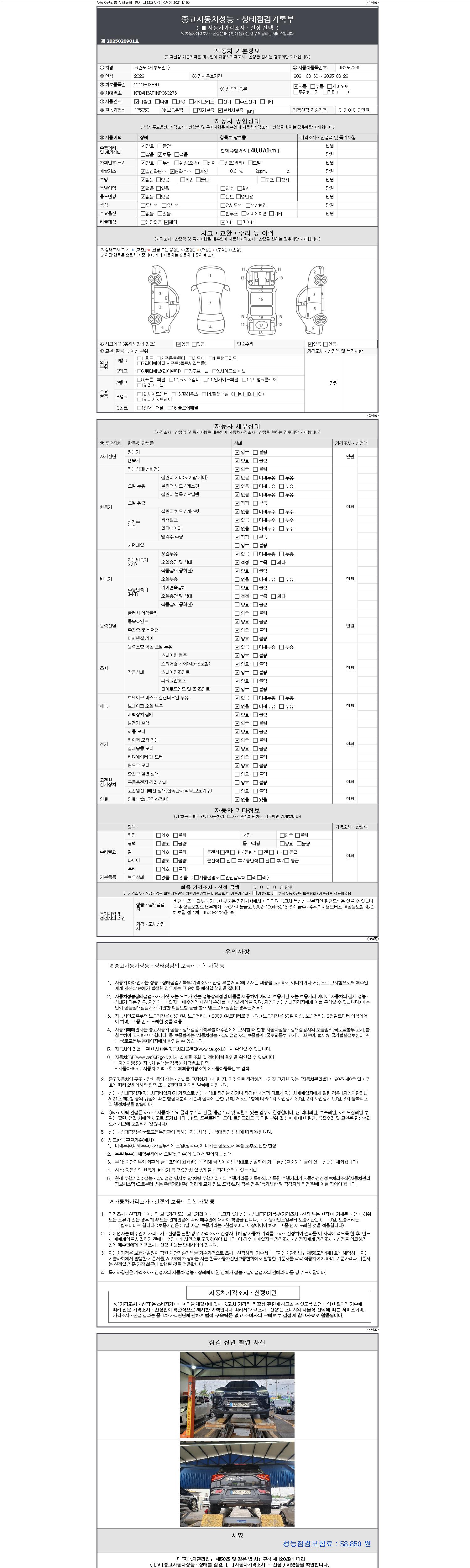 2. 차량 등록증이나 성능점검지 등을 상담자에게 요청및 확인하시고 사전에 미리 점검 하시기를 권유드립니다.