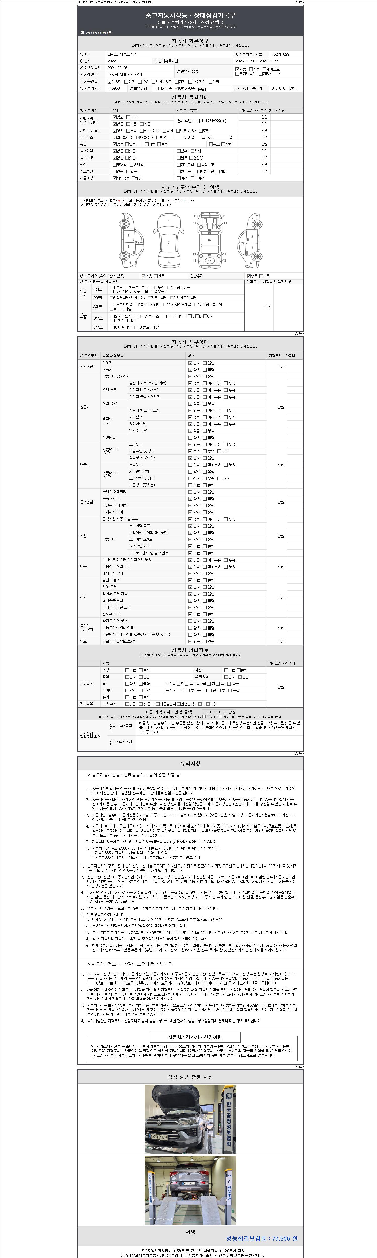 2. 차량 등록증이나 성능점검지 등을 상담자에게 요청및 확인하시고 사전에 미리 점검 하시기를 권유드립니다.