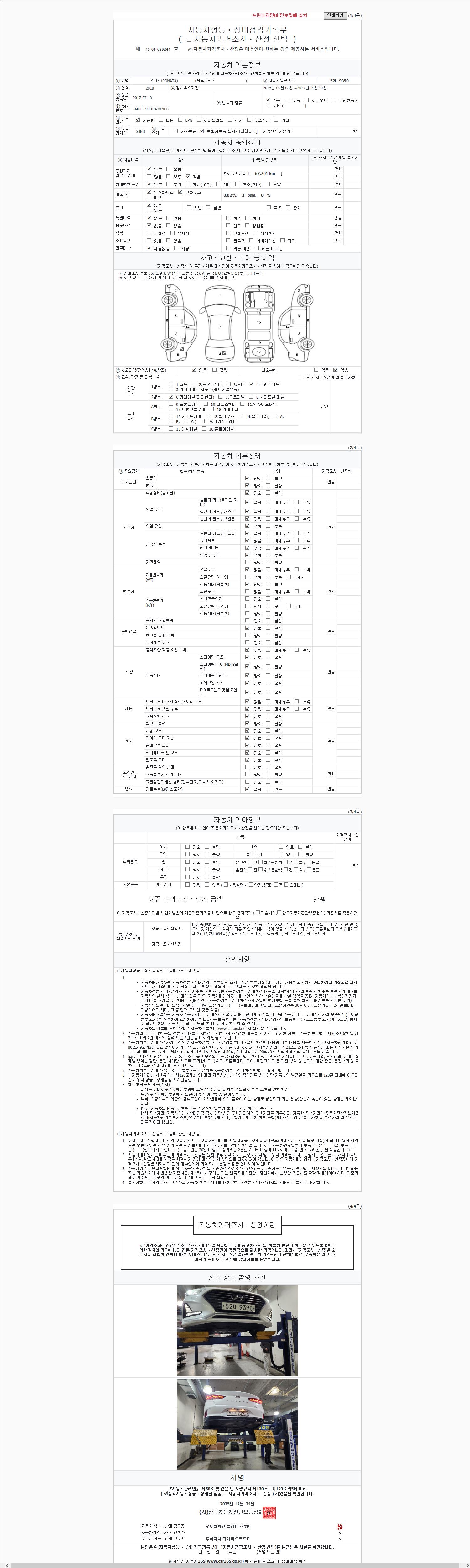 | 주행거리 | 67,701 km | 차량번호 | 52다9390 |