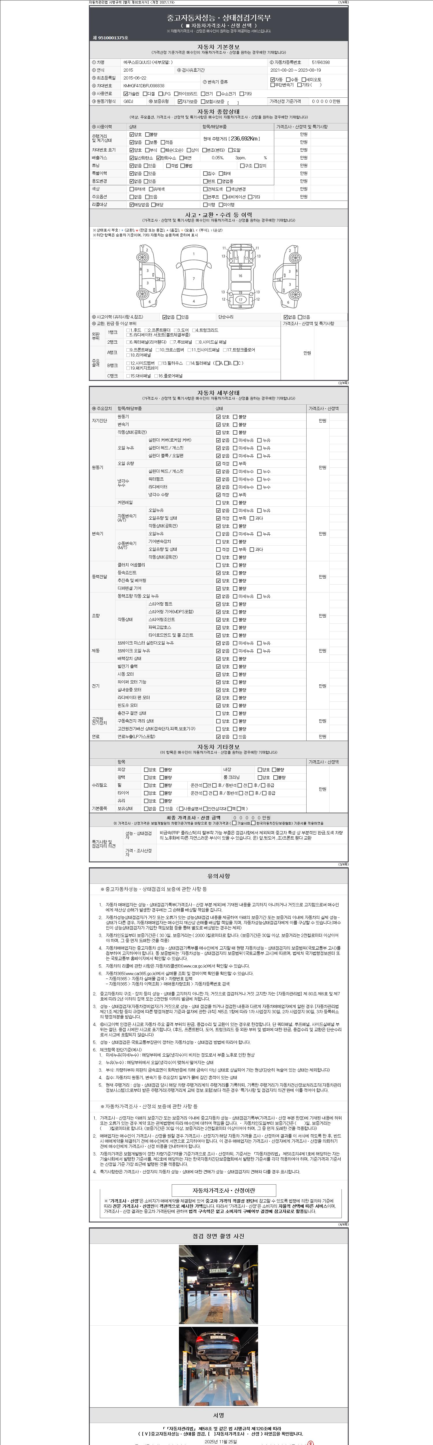 2. 차량 등록증이나 성능점검지 등을 상담자에게 요청및 확인하시고 사전에 미리 점검 하시기를 권유드립니다.
