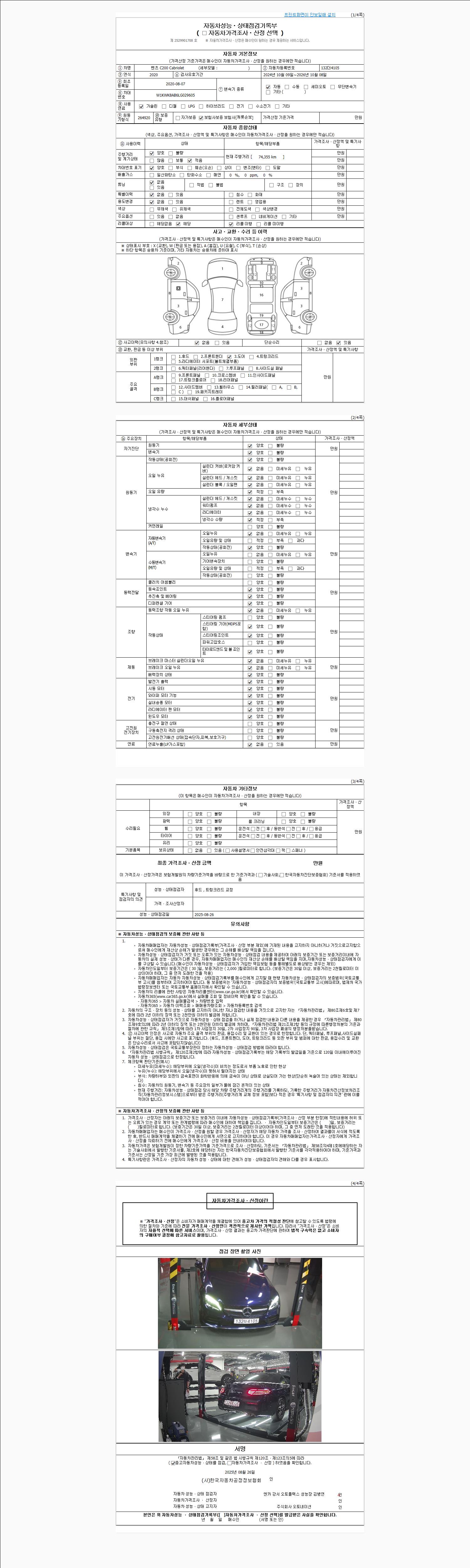 사고유무 성능기록부 참조 제시번호 제 2025117823 호