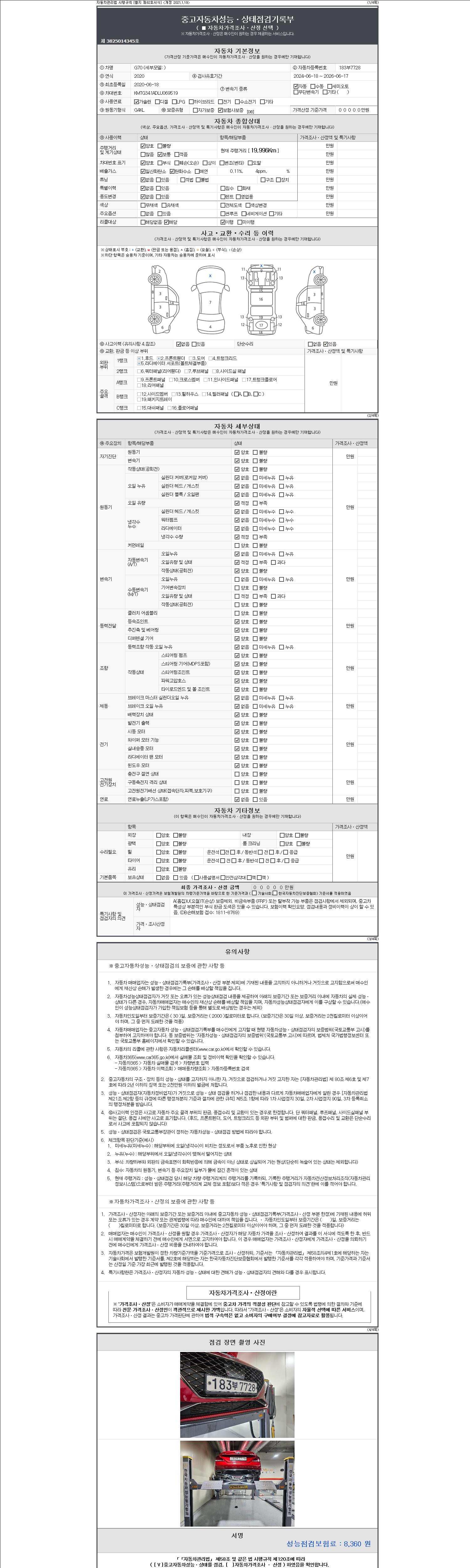 2. 차량 등록증이나 성능점검지 등을 상담자에게 요청및 확인하시고 사전에 미리 점검 하시기를 권유드립니다.