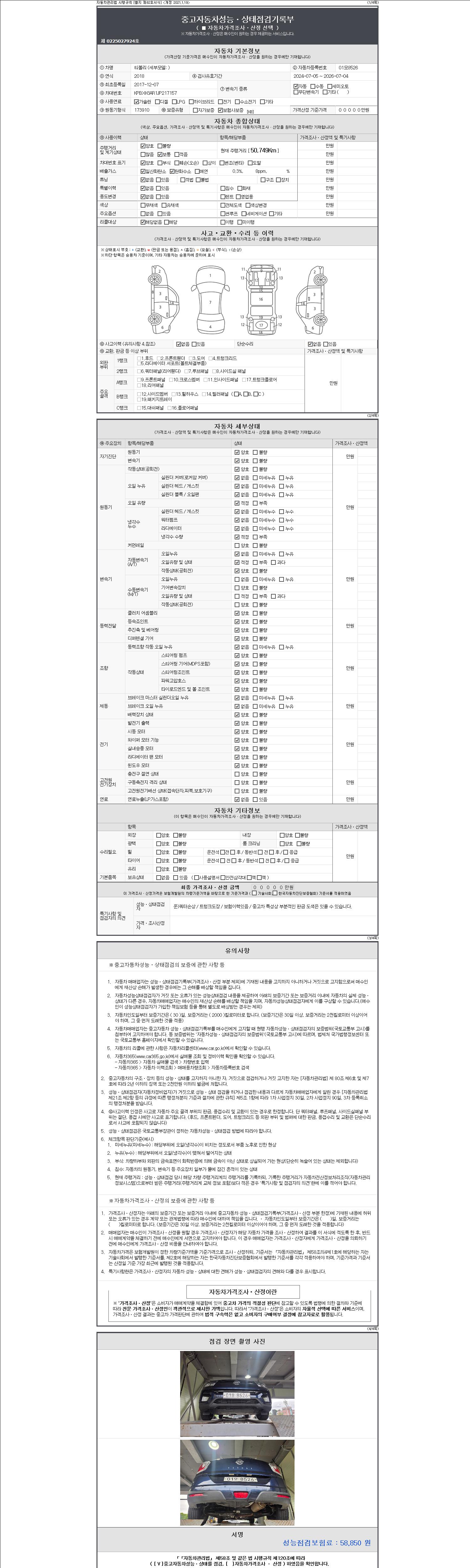 2. 차량 등록증이나 성능점검지 등을 상담자에게 요청및 확인하시고 사전에 미리 점검 하시기를 권유드립니다.