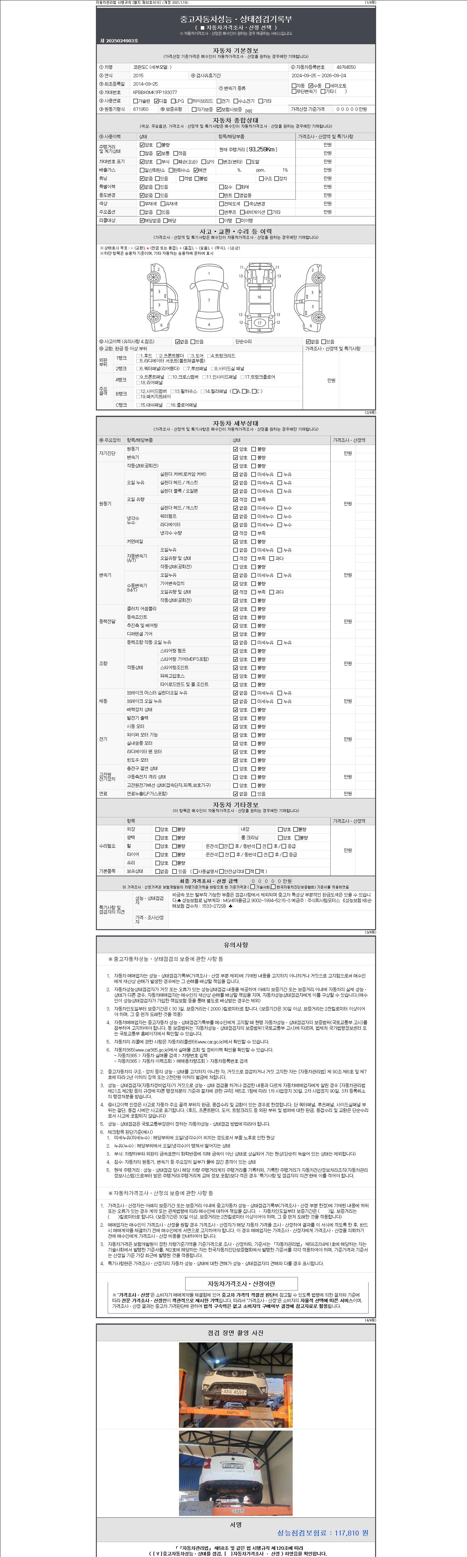 2. 차량 등록증이나 성능점검지 등을 상담자에게 요청및 확인하시고 사전에 미리 점검 하시기를 권유드립니다.