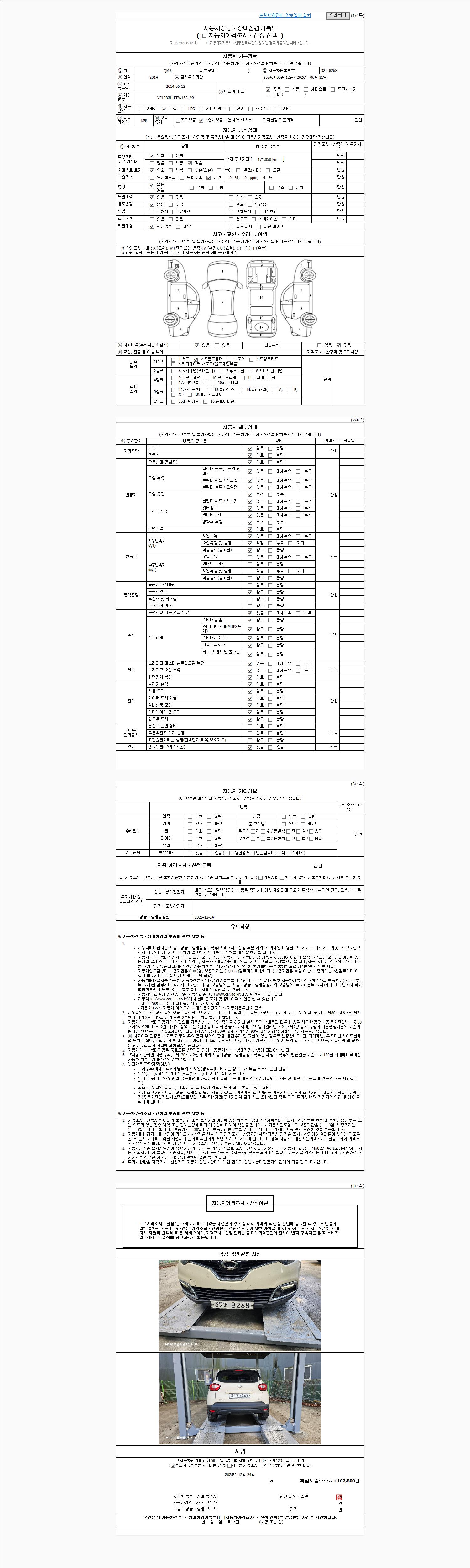 2. 차량 등록증이나 성능점검지 등을 상담자에게 요청및 확인하시고 사전에 미리 점검 하시기를 권유드립니다.