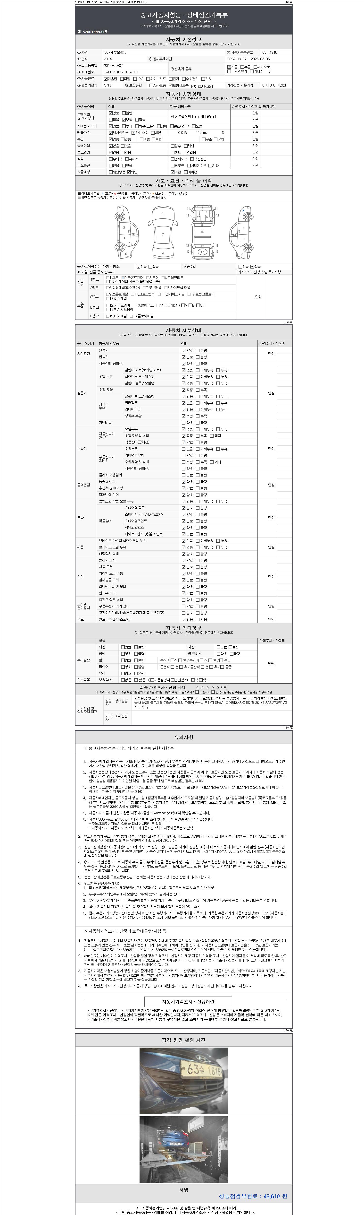 사고유무 성능기록부 참조 제시번호 제 2147483647 호
