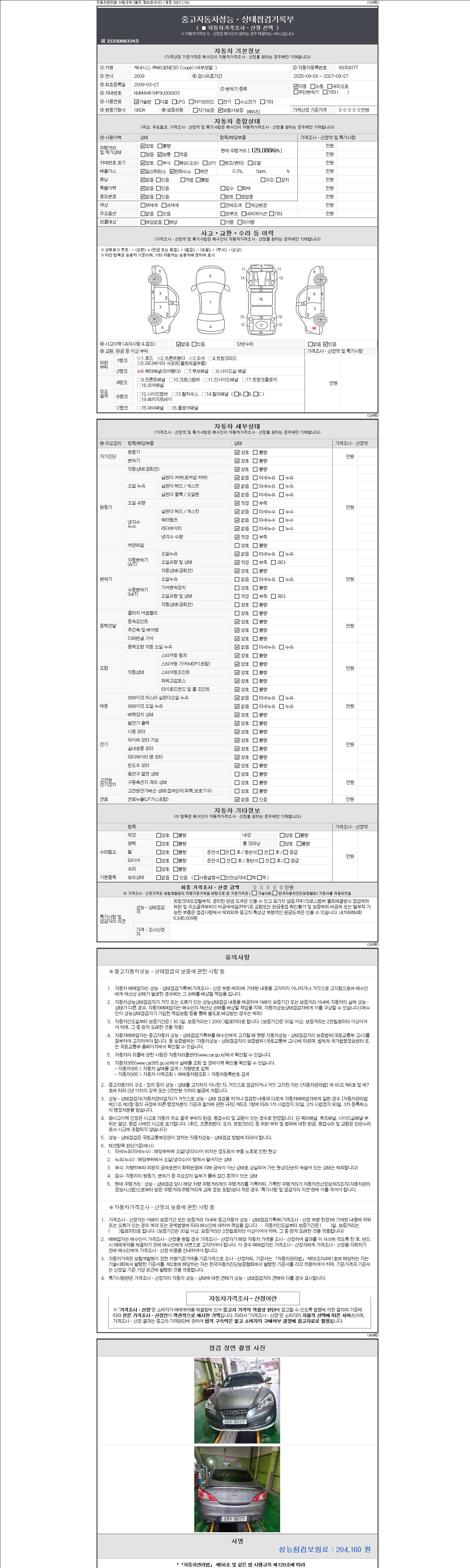 -중고자동차 매매업자를 통해 차량을 구입하실 경우 반드시 "중고자동차 성능, 상태점검 기록부"를 교뷰 받으셔야 하며, 매매업자는 반드시 의무 교부 하여야 압니다.