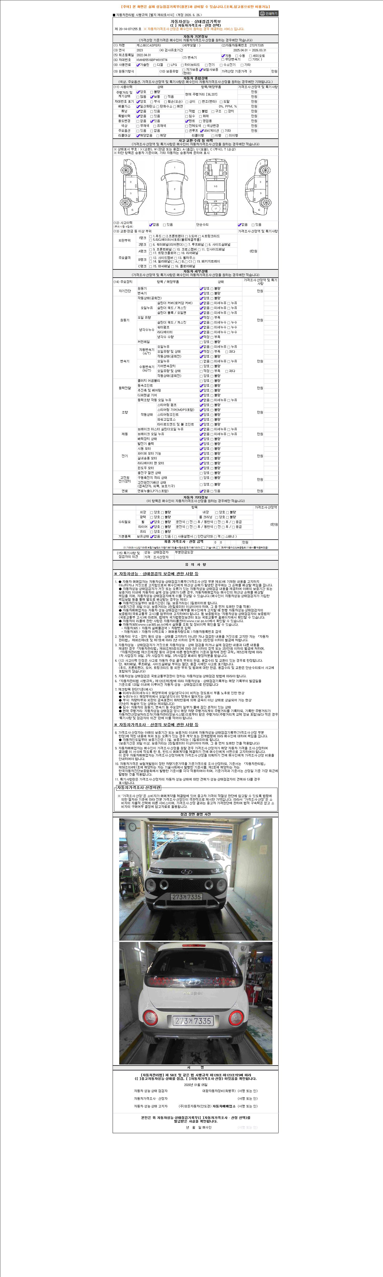 2. 차량 등록증이나 성능점검지 등을 상담자에게 요청및 확인하시고 사전에 미리 점검 하시기를 권유드립니다.