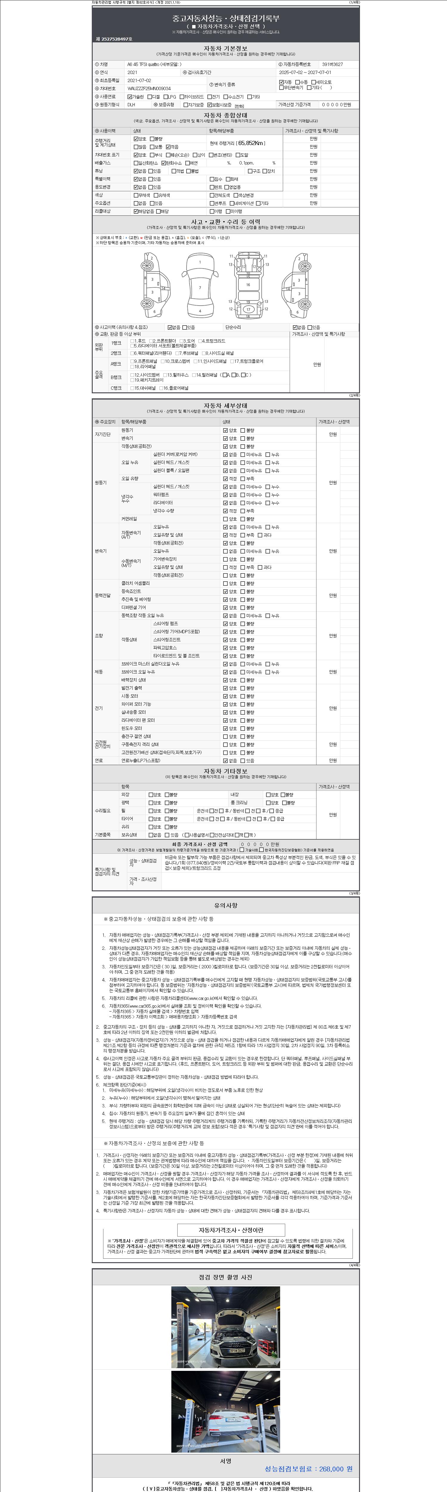 2. 차량 등록증이나 성능점검지 등을 상담자에게 요청및 확인하시고 사전에 미리 점검 하시기를 권유드립니다.