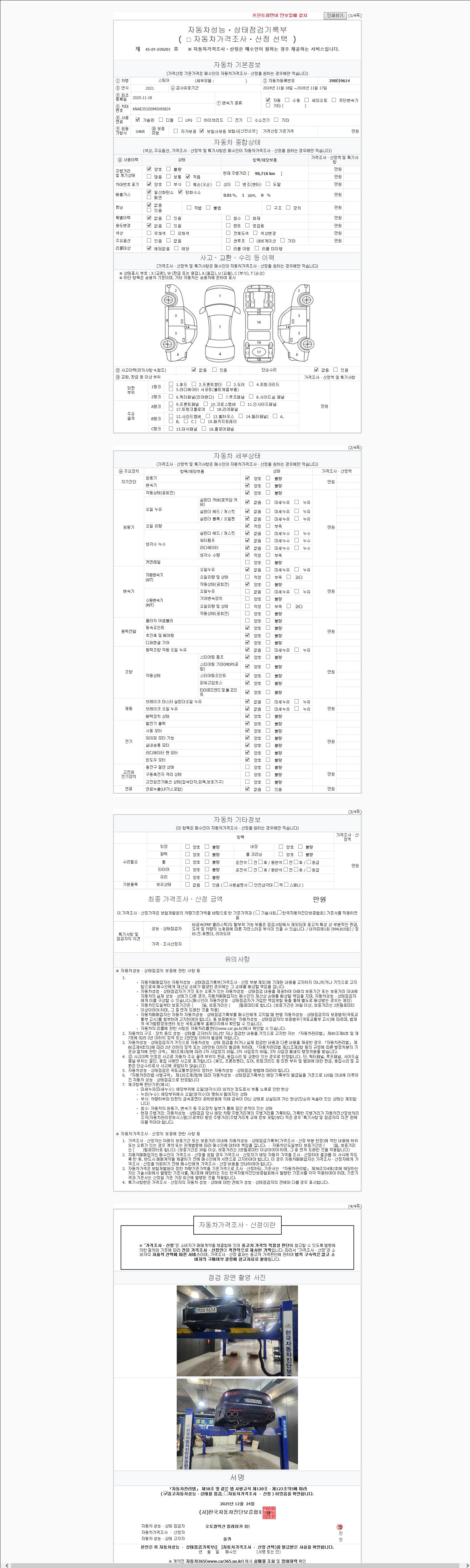 | 주행거리 | 98,718 km | 차량번호 | 290더9614 |