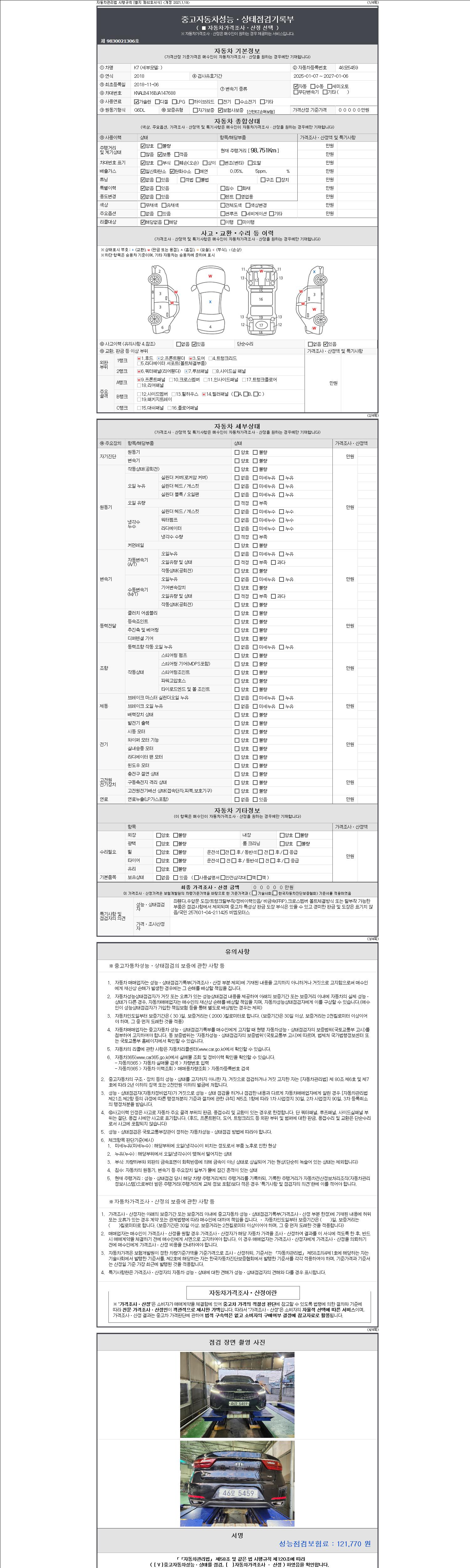 2. 차량 등록증이나 성능점검지 등을 상담자에게 요청및 확인하시고 사전에 미리 점검 하시기를 권유드립니다.