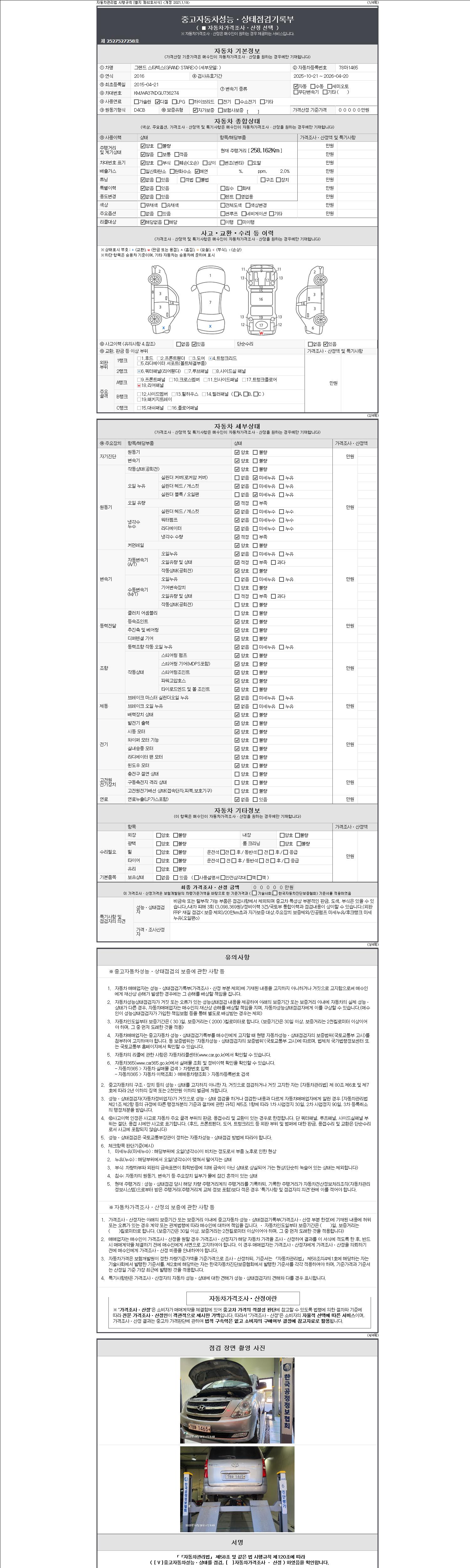 2. 차량 등록증이나 성능점검지 등을 상담자에게 요청및 확인하시고 사전에 미리 점검 하시기를 권유드립니다.
