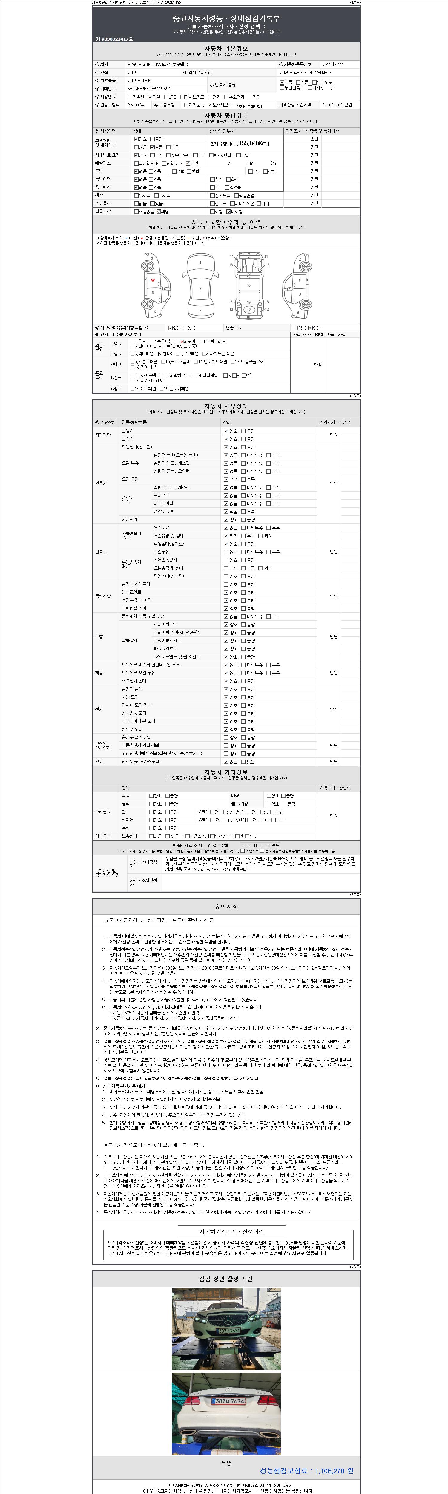 2. 차량 등록증이나 성능점검지 등을 상담자에게 요청및 확인하시고 사전에 미리 점검 하시기를 권유드립니다.