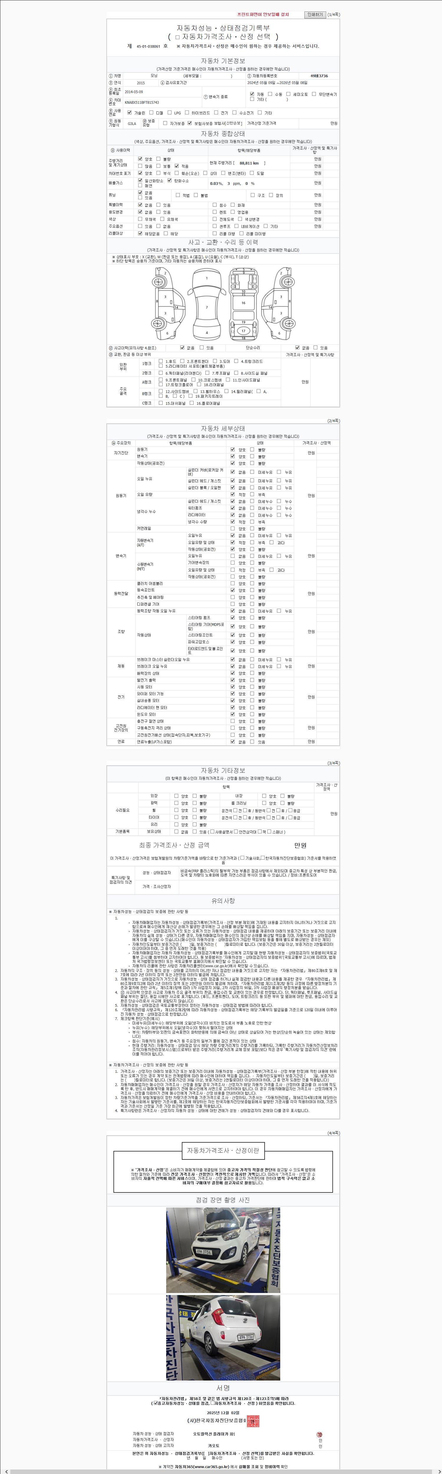2. 차량 등록증이나 성능점검지 등을 상담자에게 요청및 확인하시고 사전에 미리 점검 하시기를 권유드립니다.