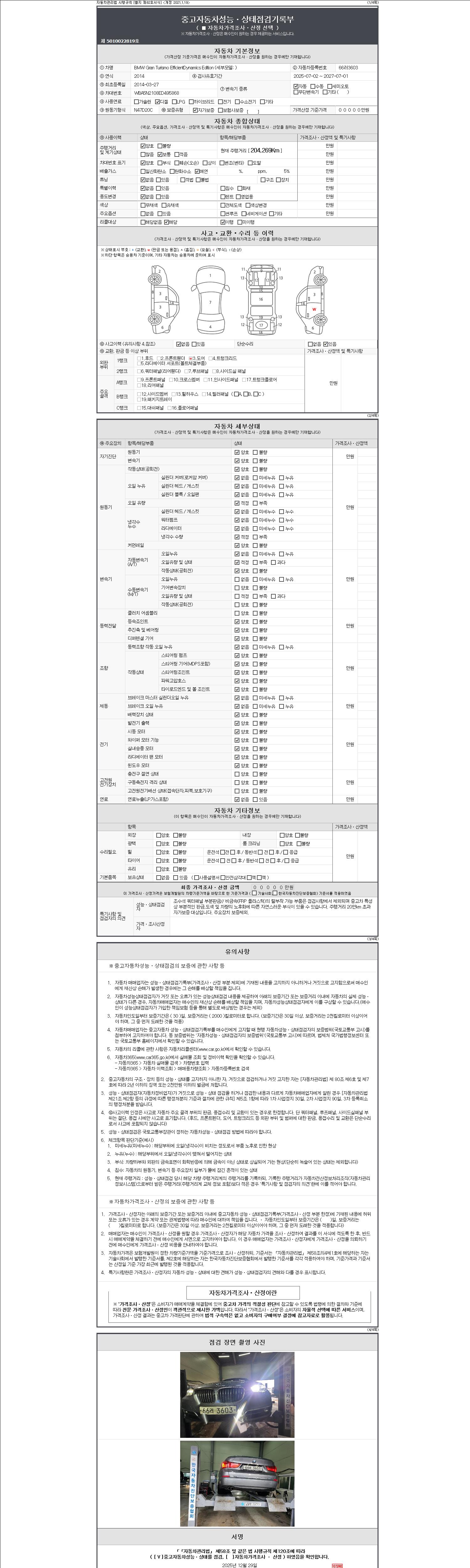 2. 차량 등록증이나 성능점검지 등을 상담자에게 요청및 확인하시고 사전에 미리 점검 하시기를 권유드립니다.