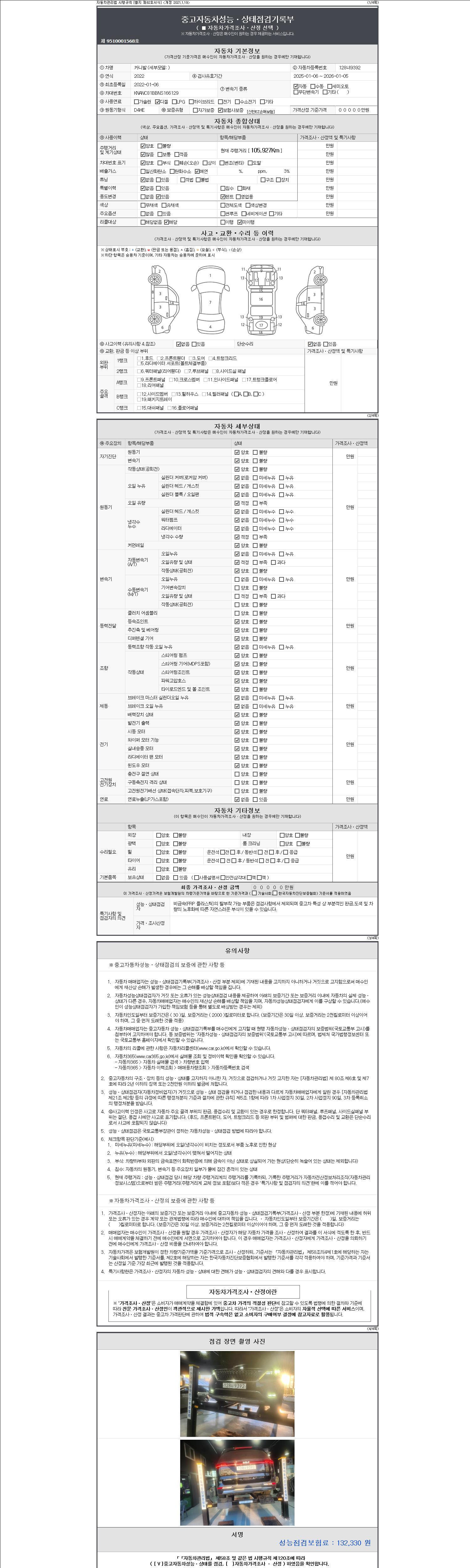 2. 차량 등록증이나 성능점검지 등을 상담자에게 요청및 확인하시고 사전에 미리 점검 하시기를 권유드립니다.