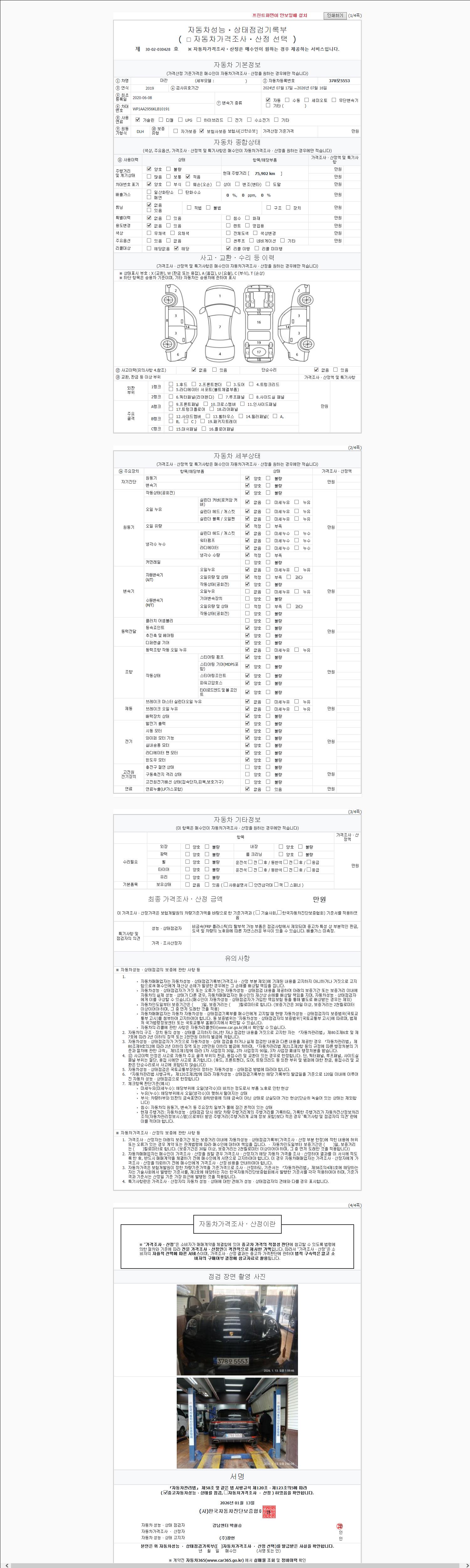 2. 차량 등록증이나 성능점검지 등을 상담자에게 요청및 확인하시고 사전에 미리 점검 하시기를 권유드립니다.