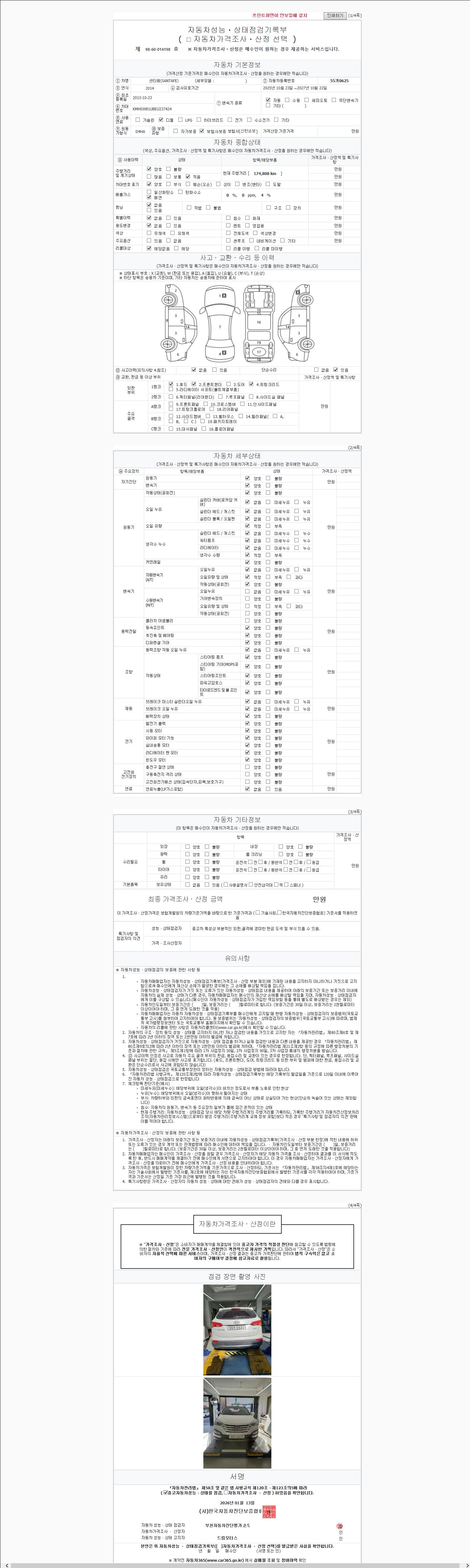 사고유무 성능기록부 참조 제시번호 제 2026006938 호