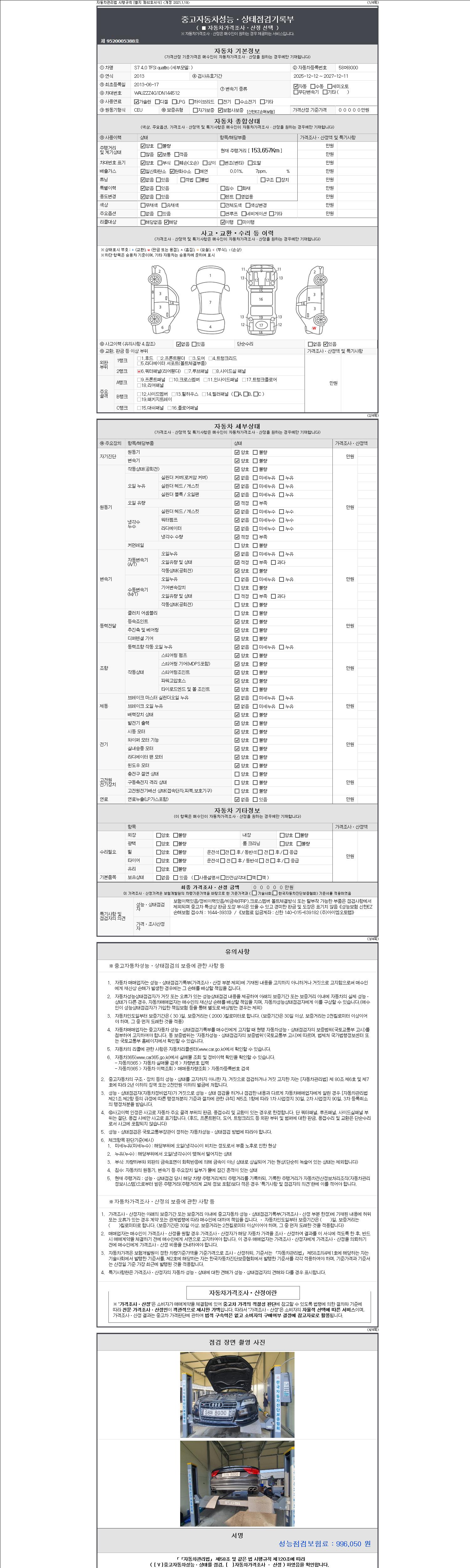 -중고자동차 매매업자를 통해 차량을 구입하실 경우 반드시 "중고자동차 성능, 상태점검 기록부"를 교뷰 받으셔야 하며, 매매업자는 반드시 의무 교부 하여야 압니다.
