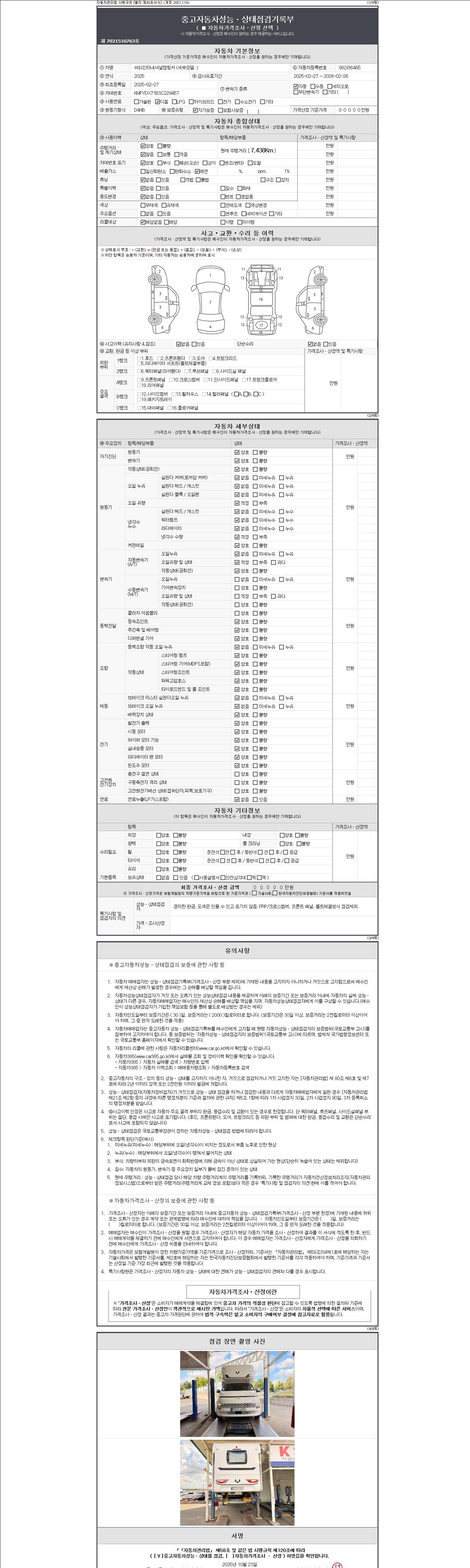 2. 차량 등록증이나 성능점검지 등을 상담자에게 요청및 확인하시고 사전에 미리 점검 하시기를 권유드립니다.