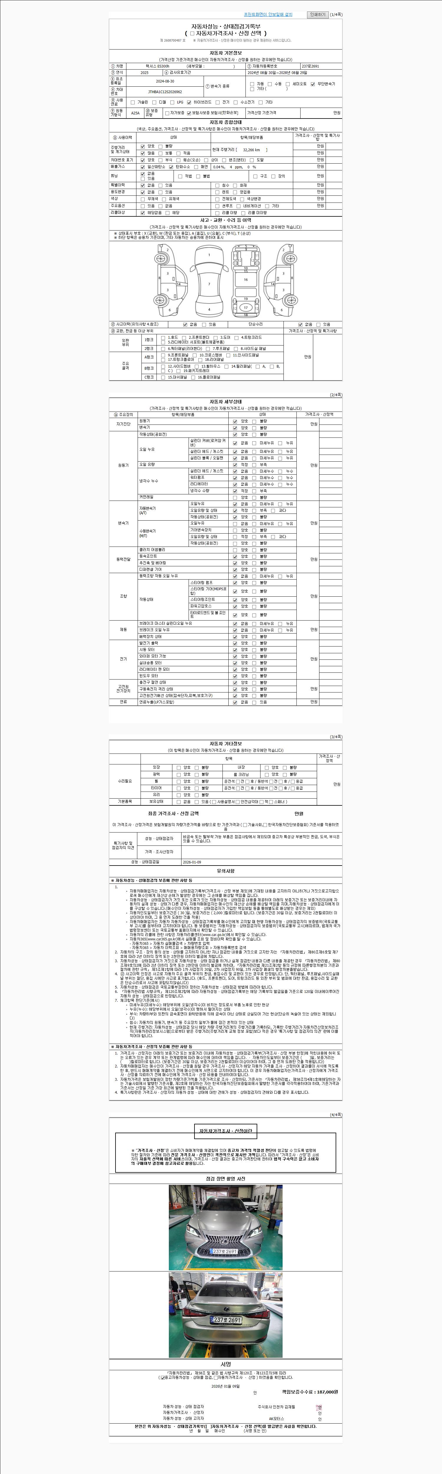 | 사고유무 | 성능기록부 참조 | 제시번호 | 제 2026001704 호 |