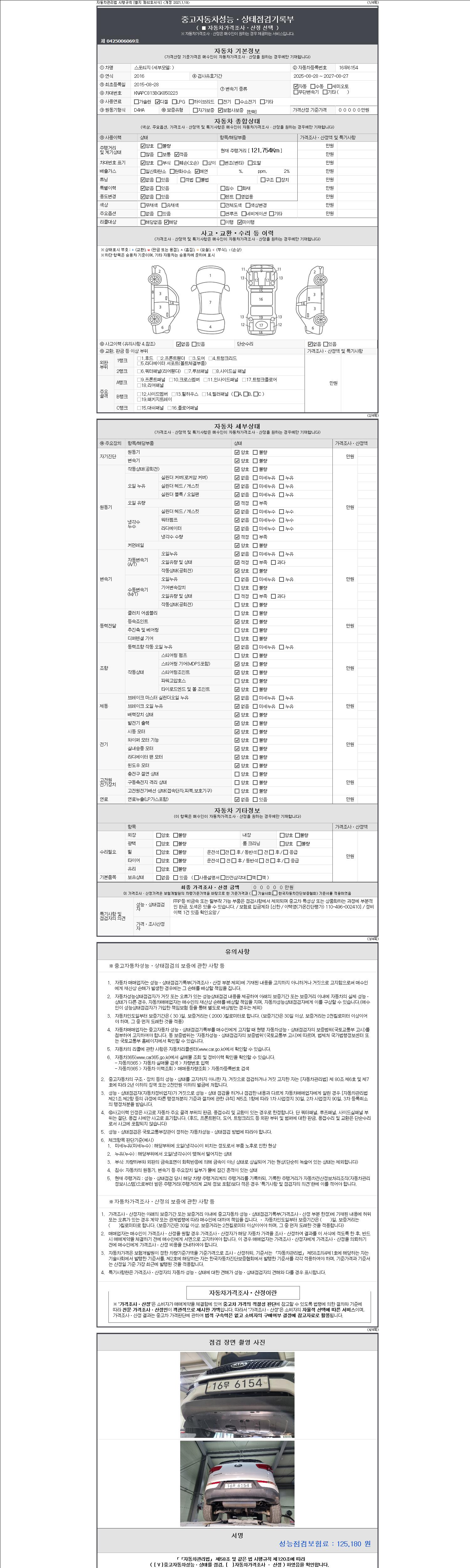 | 주행거리 | 121,754 km | 차량번호 | 16무6154 |