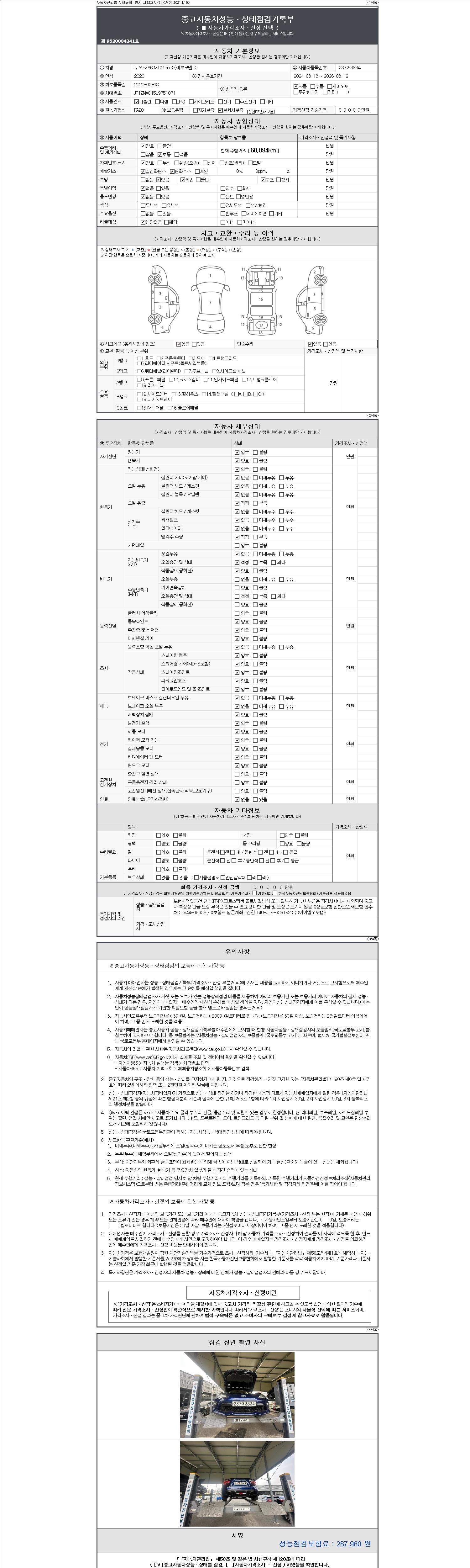 2. 차량 등록증이나 성능점검지 등을 상담자에게 요청및 확인하시고 사전에 미리 점검 하시기를 권유드립니다.