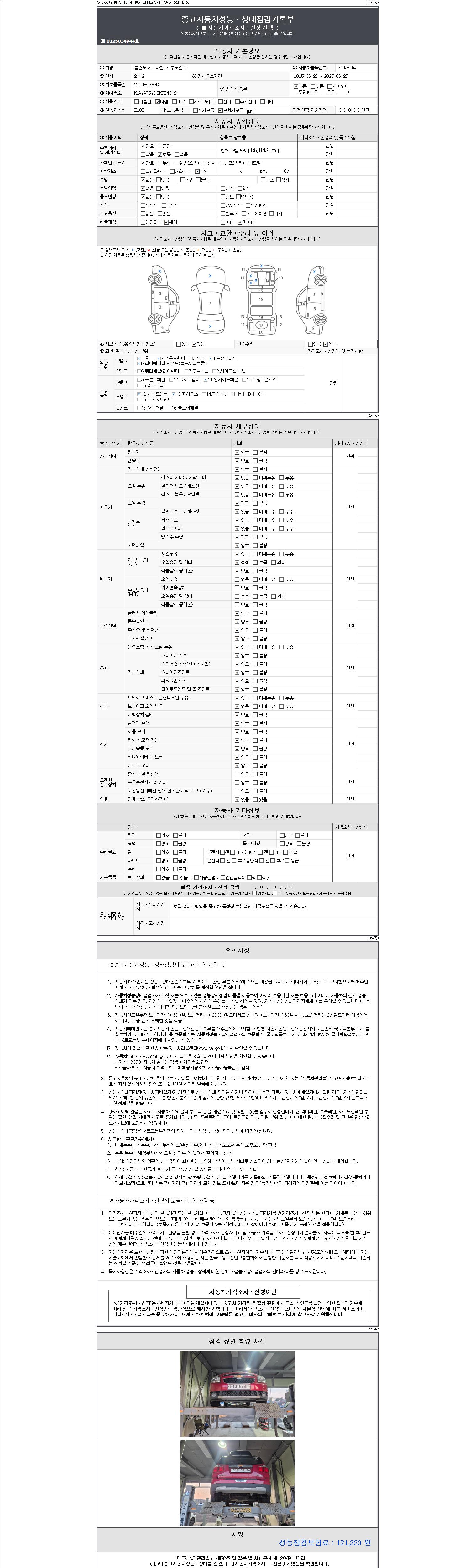 2. 차량 등록증이나 성능점검지 등을 상담자에게 요청및 확인하시고 사전에 미리 점검 하시기를 권유드립니다.