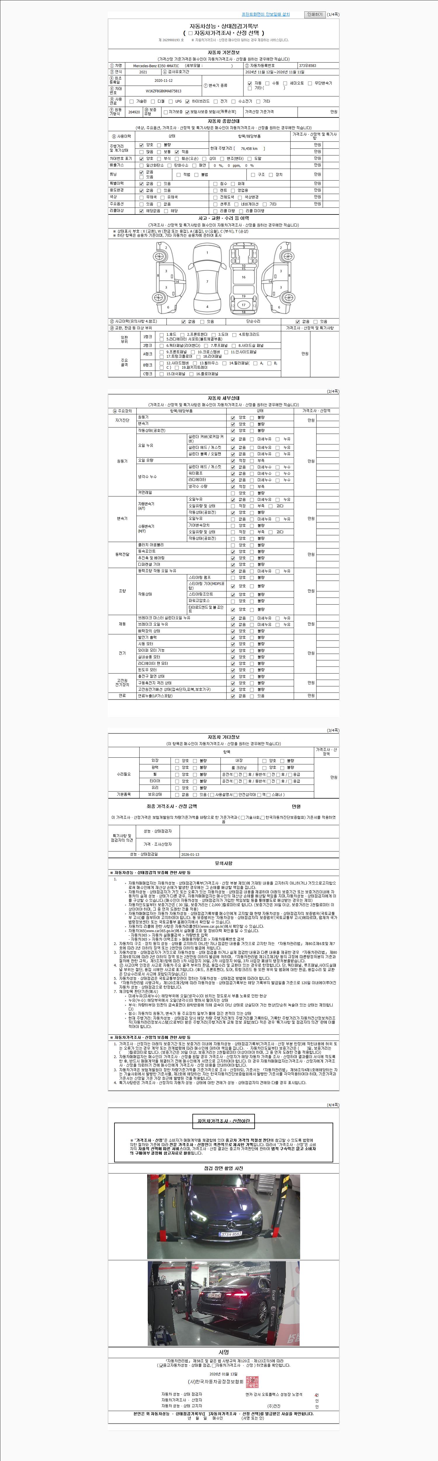 | 사고유무 | 성능기록부 참조 | 제시번호 | 제 2026004351 호 |