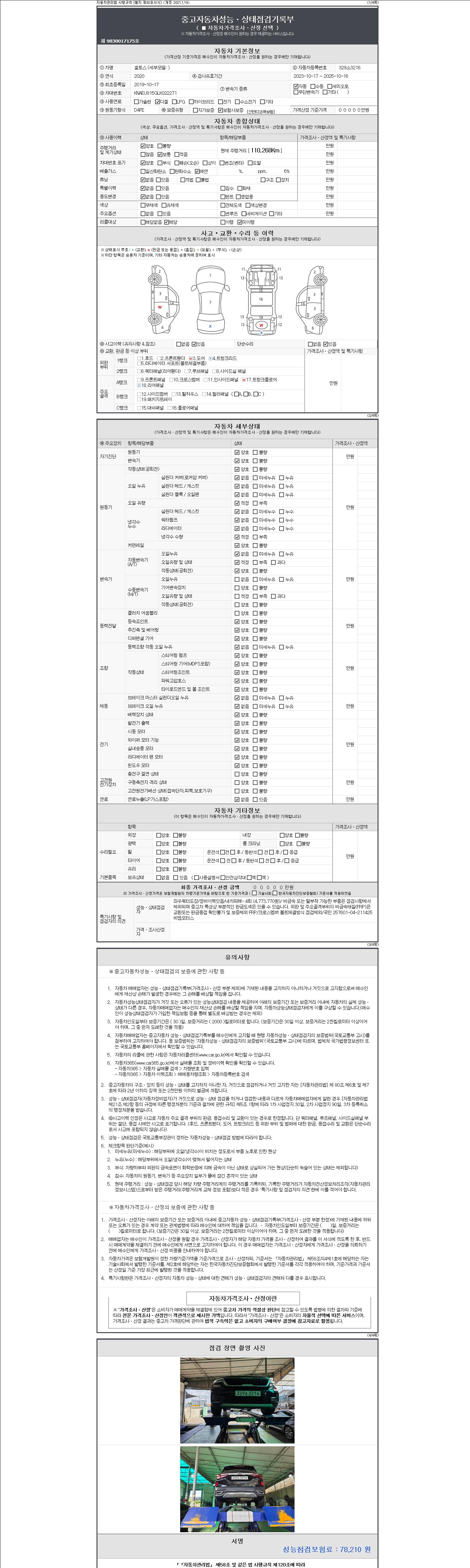 2. 차량 등록증이나 성능점검지 등을 상담자에게 요청및 확인하시고 사전에 미리 점검 하시기를 권유드립니다.