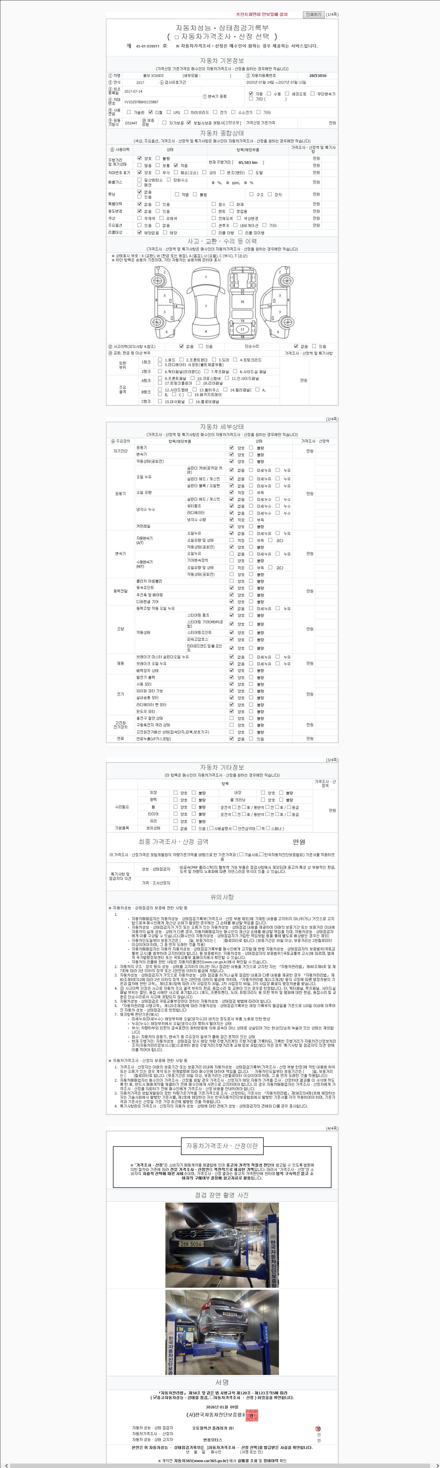 2. 차량 등록증이나 성능점검지 등을 상담자에게 요청및 확인하시고 사전에 미리 점검 하시기를 권유드립니다.