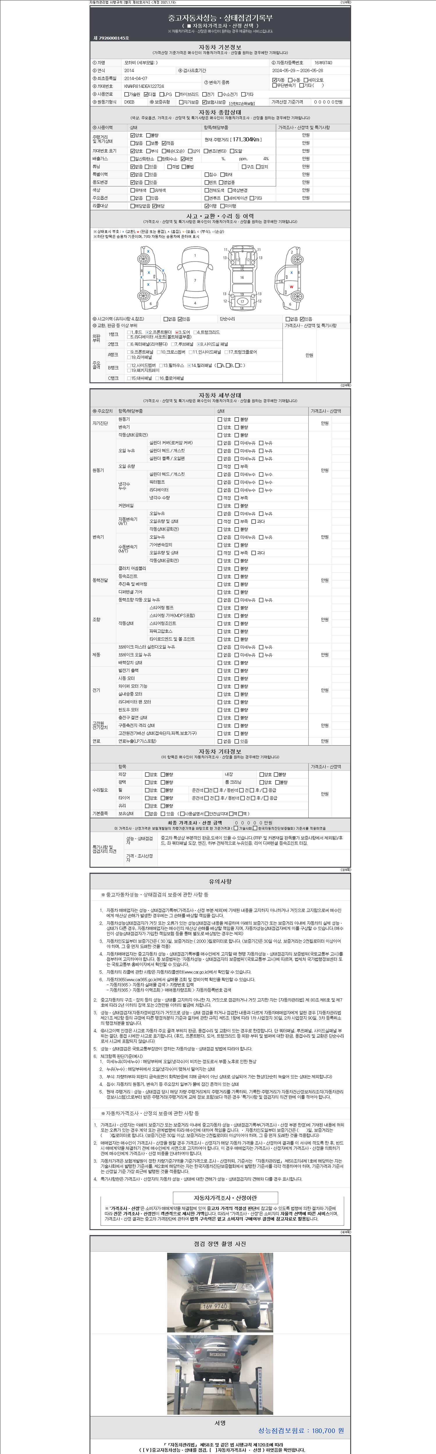 2. 차량 등록증이나 성능점검지 등을 상담자에게 요청및 확인하시고 사전에 미리 점검 하시기를 권유드립니다.