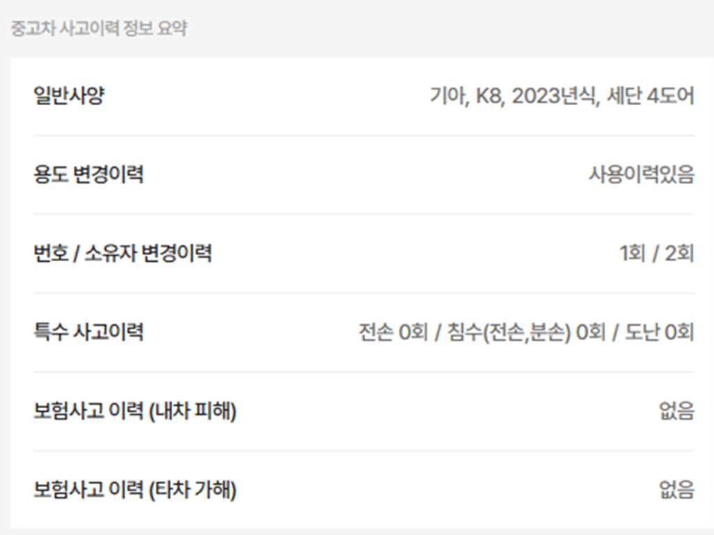 | 사고유무 | ----- | 무사고 |